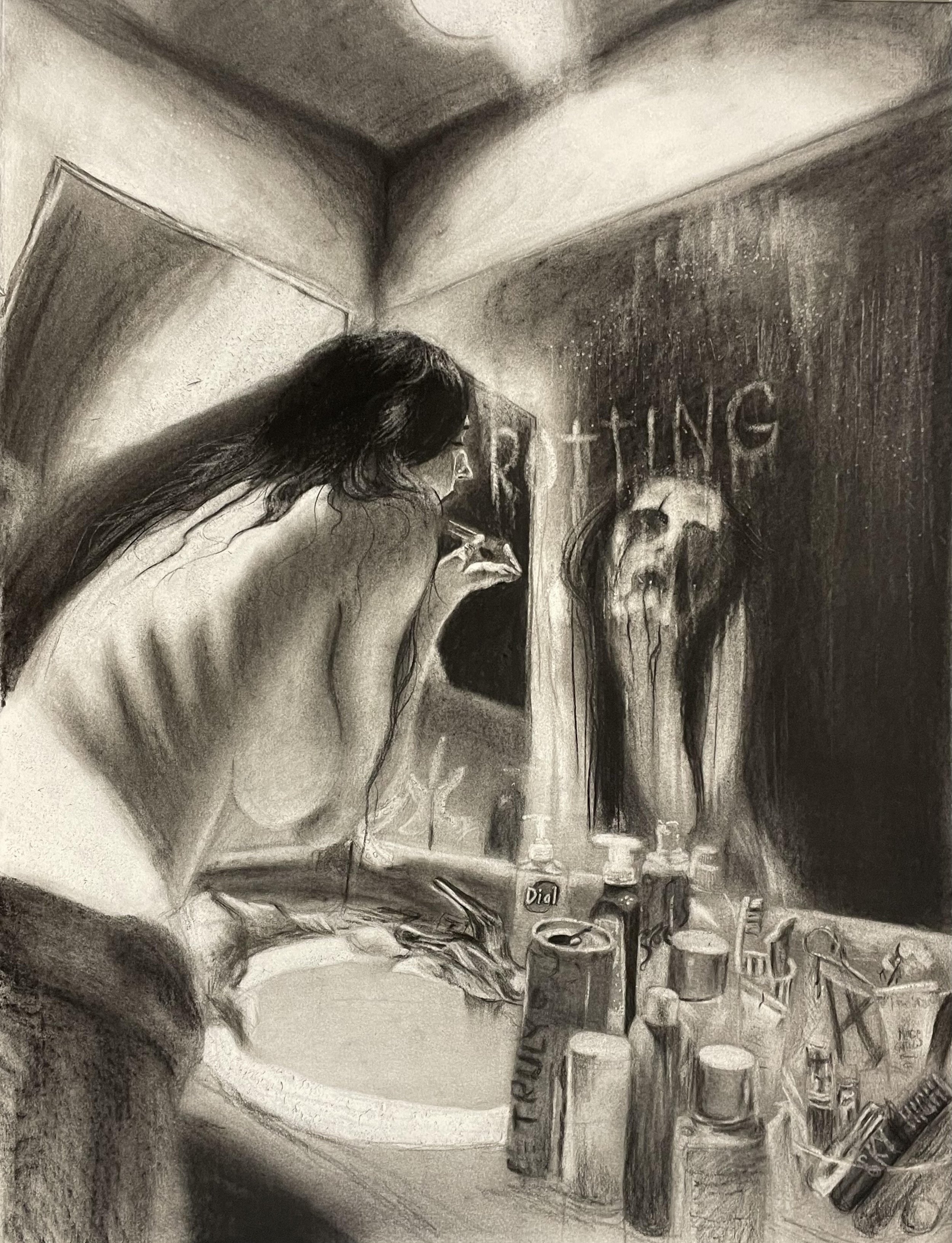 Do not look, 22" x 30", Charcoal on BFK Rives Printmaking Paper