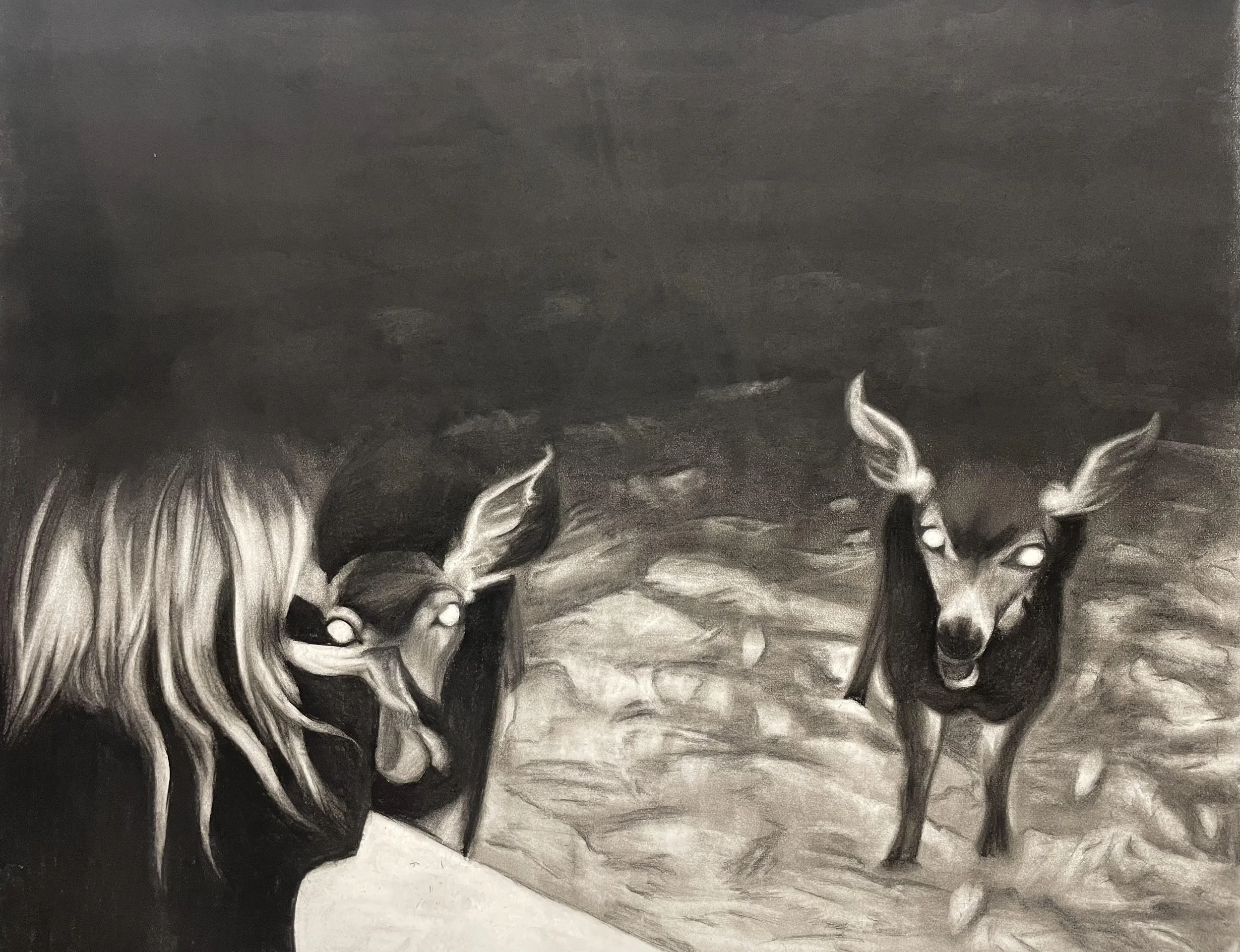 Searching, 42" x 49", Charcoal on Arches Watercolor Paper.